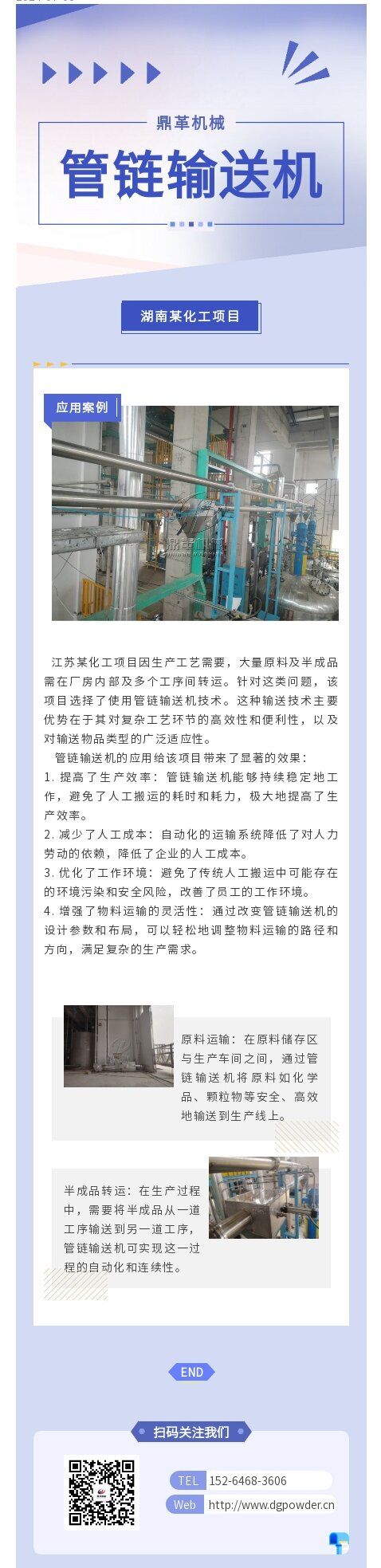 鼎革機(jī)械管鏈輸送機(jī)湖南化工項(xiàng)目
